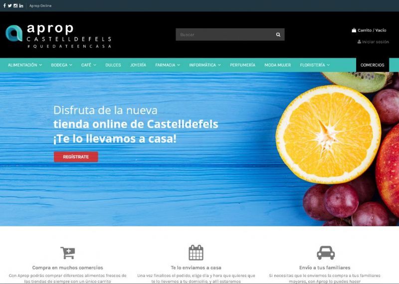 El Gremi de Comerç de Castelldefels, amb el suport de l’Ajuntament de Castelldefels, ha posat en marxa una nova iniciativa per afavorir les compres online dels comerços locals, garantint el lliurament de la compra en el mateix dia. La nova plataforma, compatible amb tots els dispositus, es pot trobar a l’adreça castelldefels.aprop.online i permet fer qualsevol compra des de casa o des del mòbil en àmbits com alimentació, equipament de la persona, equipament de la llar, etc.