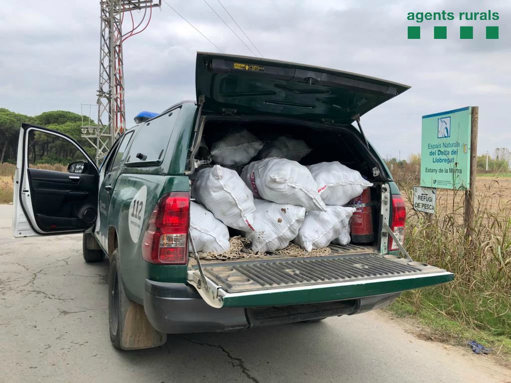 Denunciem 2 persones que estaven recol·lectant-ne a l'EIN Delta del Llobregat sense permís ni llicència. Comissem 750 kg de pinyes. pic.twitter.com/V0xwYT2oU7— Agents Rurals (@agentsruralscat) November 14, 2020