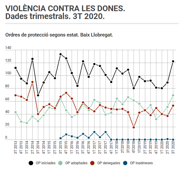 L’Observatori Comarcal del Baix Llobregat publica l’informe trimestral de violència contra les dones amb l’explotació de les dades recollides pel Consejo General del Poder Judicial. Aquest informe recull dades de denúncies; mesures de protecció; assumptes penals i  assumptes civils i ordres de protecció.