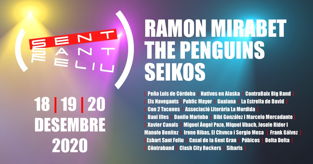 Ramon Mirabet, Seikos, The Penguins, Peña Luís de Córdoba, La Estrella de David, Con 2 Tacones, Clash City Rockers, La Mordida, Frank Gálvez, Esbart Sant Feliu, Sibaris… Són només alguns dels 25 noms les actuacions dels quals es van gravar durant el mes de novembre al Palau Falguera i a la Sala Ibèria, en format de fals directe i cuidant de manera molt especial la qualitat en la seva realització, per tal que les propostes es gaudeixin en línia de la millor manera possible i també perquè quedi documentat l’alt nivell i la diversitat de les actuacions que aquests i aquestes artistes de Sant Feliu han volgut compartir amb el públic.