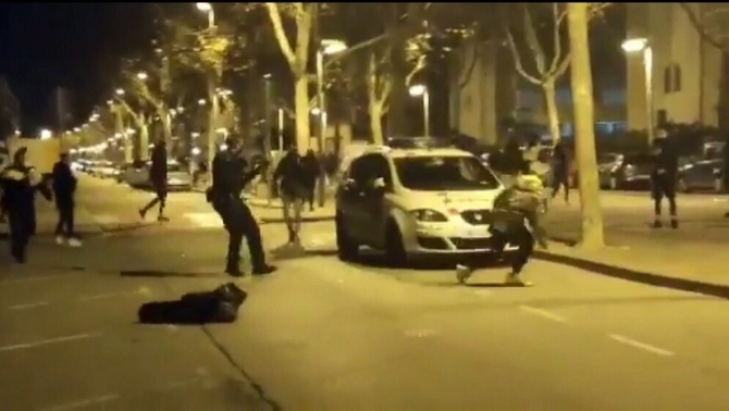 Diversos veïns varen gravar amb telèfons mòbils com els joves propinaven cops al vehicle policial i insultaven als agents.