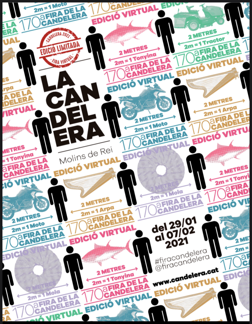 L’Ajuntament de Molins de Rei vol agrair a totes les persones que han participat a la 170ª edició de la Fira de la Candelera, que enguany s’ha fet en gran mesura en un format virtual. La implicació d’expositors, entitats, grups artístics i de les persones de l’organització ha permès tirar endavant una fira molt complexa però que ha atret a més de 25.000 persones. La bona acollida s’ha fet notar a les diferents activitats, a les campanyes de promoció, a les vendes dels estands i en el seguiment a través de les diferents xarxes socials.
