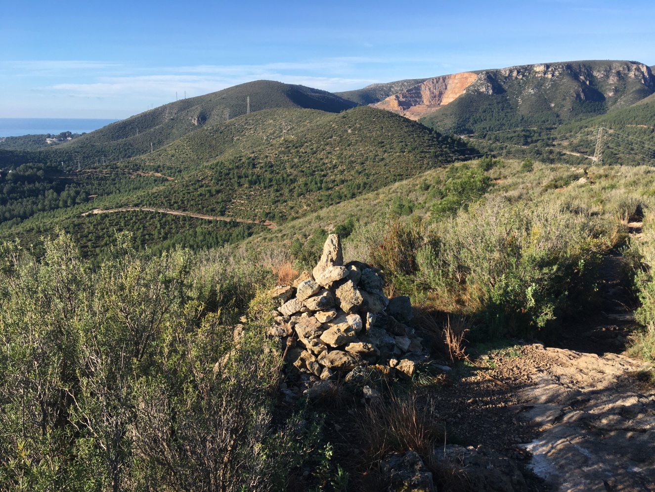 2.00 Puig del Pi (311). A 5 minuts i, separat per un collet, es troba el Puig del Cérvol (306). El sender SL-C 99 continua cap al nord-oest fins a La Morella. Descansem 25 minuts gaudint de les vistes i tornem pel mateix camí.