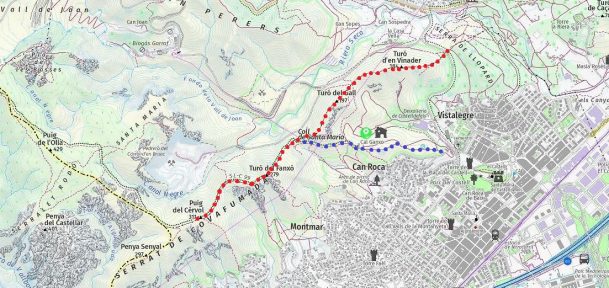 Itinerari en vermell i itinerari alternatiu en blau. Mapa ICC.