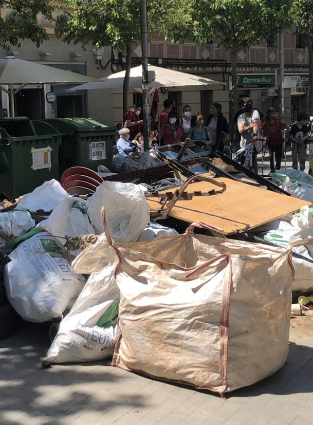 Un cop acabada la jornada de recollida, organitzada per diverses entitats mediambientalistes i amb el suport de l’Ajuntament del municipi; els i les participants van portar els residus a la Plaça de la Vila per tal de fer-ne un recompte i poder mostrar la gran quantitat de residus recollits, fruit de l’incivisme d’algunes persones que utilitzen els espais naturals com a abocadors.