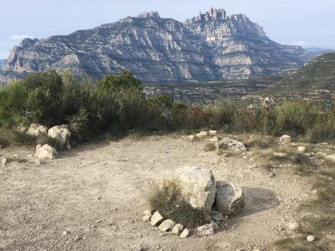 1.25 Puigcendrós (499): gaudeixo una estona de les vistes de Montserrat i torno al Pla del Fideuer, on descanso 15 minuts. Després torno pel mateix camí per on he vingut.