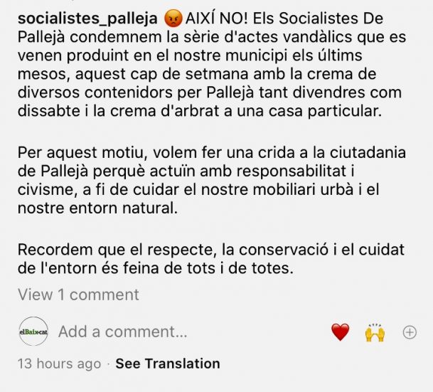 Les primeres reaccions no s’han fet esperar i el Partit dels Socialistes de Pallejà ja ha publicat aquest escrit a les seves xarxes socials: