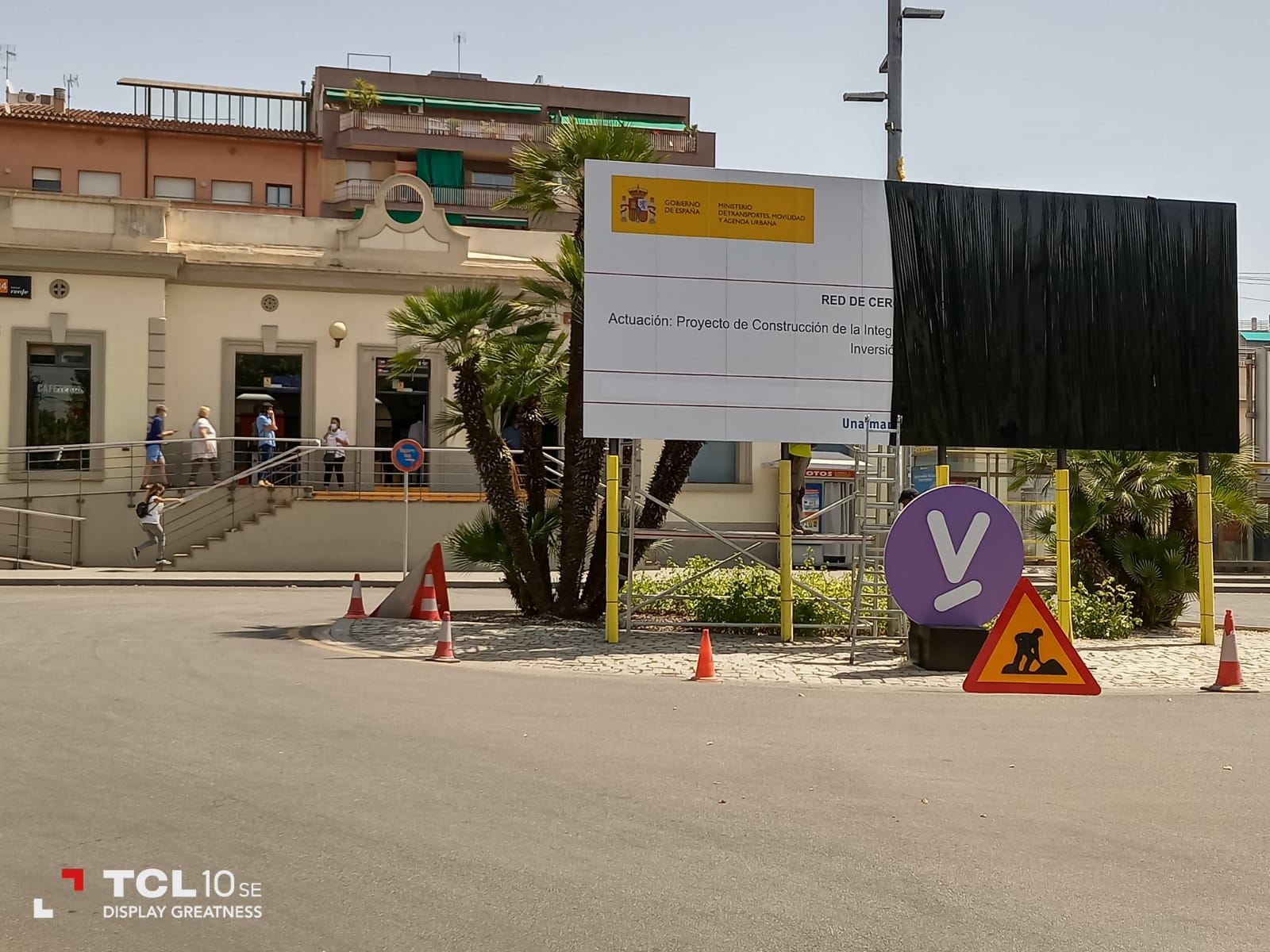 La plaça de l’Estació de Sant Feliu de Llobregat acull un cartell d’ADIF que anuncia les obres del tant esperat soterrament de la línia fèrria al seu pas per la ciutat. En el cartell es pot llegir: “ Projecte de construcció de la integració del Ferrocarril a Sant Feliu de Llobregat” i dona informació sobre el pressupost de la inversió:62.629.919’43 euros.