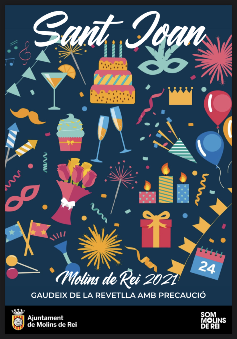 Per tal d’informar degudament a tots els molinencs i molinenques sobre les mesures de seguretat i prevenció, l’Alcaldia i l’alcalde de Molins de Rei han elaborat un ban en relació a la Revetlla de Sant Joan. Pots consultar-la a: https://www.molinsderei.cat/actualitat/2021/06/18/revetlla-de-sant-joan-2021/