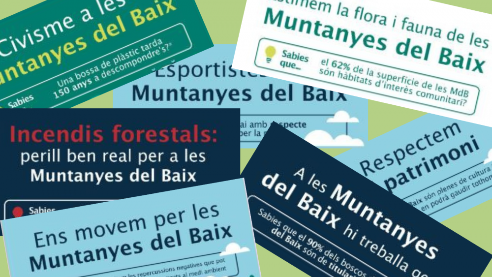 Aquesta campanya d’informació al públic sobre l’accés respectuós al medi natural i l’edició de les vuit infografies de material divulgatiu de suport sobre els valors de les Muntanyes del Baix, està inclosa al Pla d’Accions de les Muntanyes del Baix 2019-2023