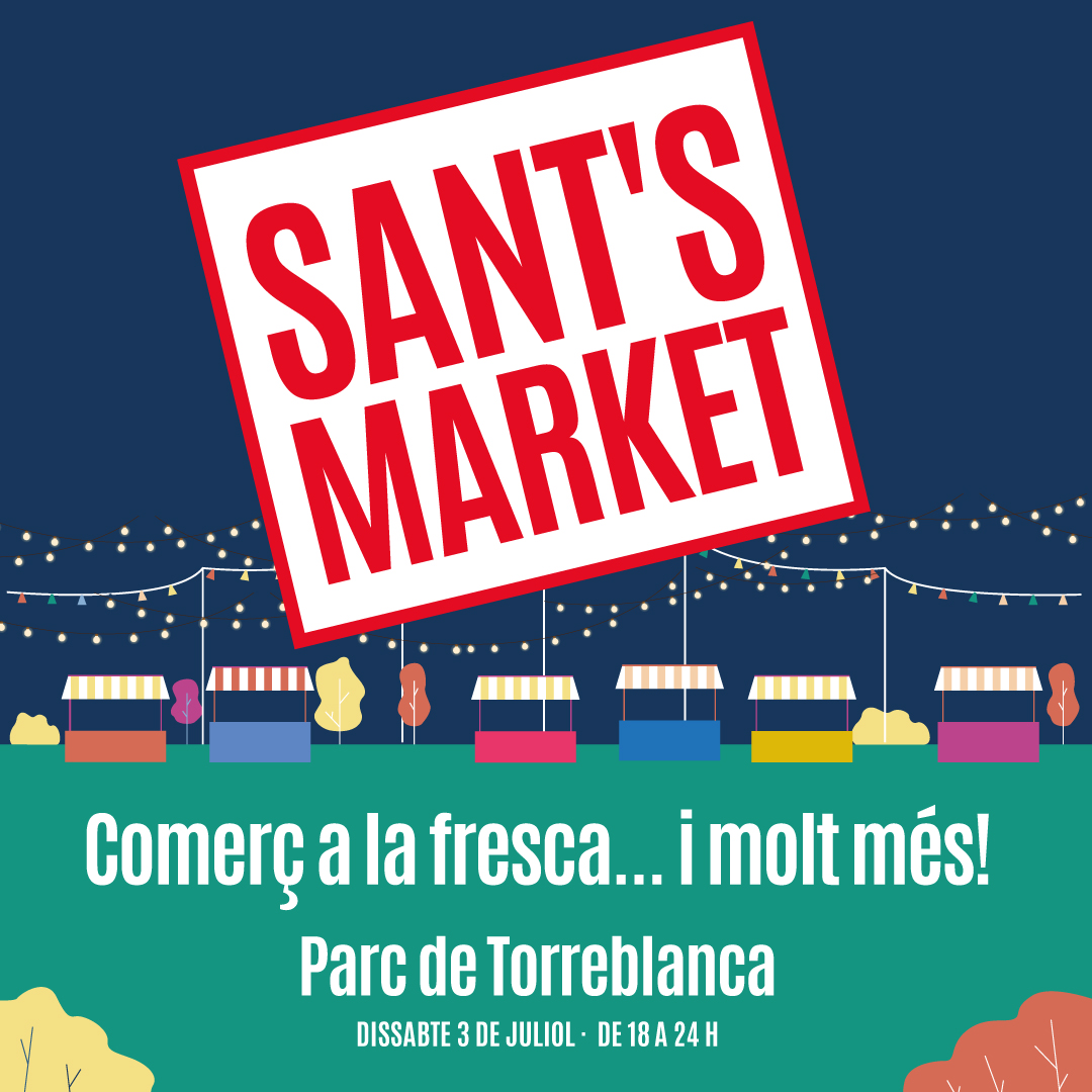 Aquest proper dissabte 3 de juliol, de 18 a 24 hores, se celebrarà la tercera edició del Sant’s Market, el mercat a l’aire lliure del parc de Torreblanca. Més de 50 establiments comercials i de restauració de Sant Joan Despí, Sant Feliu de Llobregat i Sant Just Desvern participaran en aquesta iniciativa per dinamitzar el comerç local i donar a conèixer la seva oferta