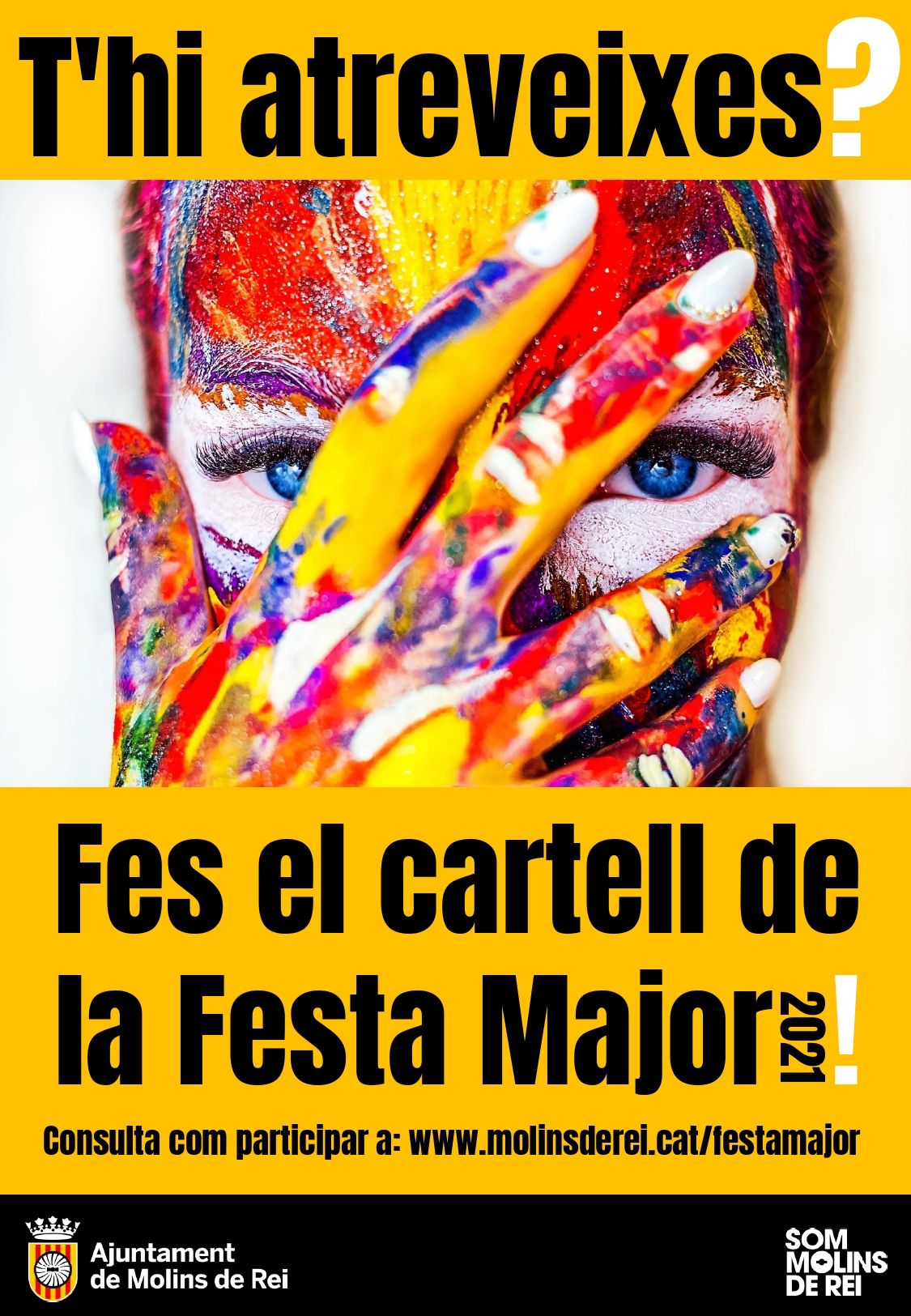Des d’avui i fins al 15 de juliol, totes les persones més grans de 16 anys amb interès per crear el cartell de la Festa Major de Molins de Rei 2021 poden presentar la seva proposta a l’Oficina d’Atenció Ciutadana (c/Rubió i Ors, núm. 2-4). Prèviament, hauran de presentar una instància telemàtica al web de l’Ajuntament.