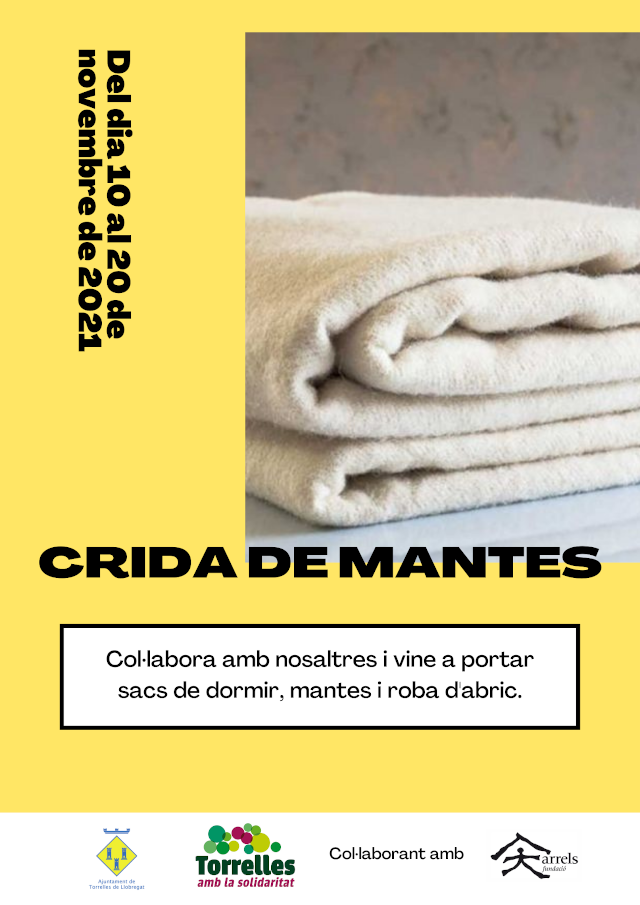 Arriba l’hivern i les baixes temperatures i les persones sense sostre en pateixen les conseqüències. Per aquest motiu, la regidoria de Cooperació i Solidaritat de l’Ajuntament de Torrelles de Llobregat ha posat en marxa una campanya solidària de recollida de mantes, sacs de dormir i roba d’abric.