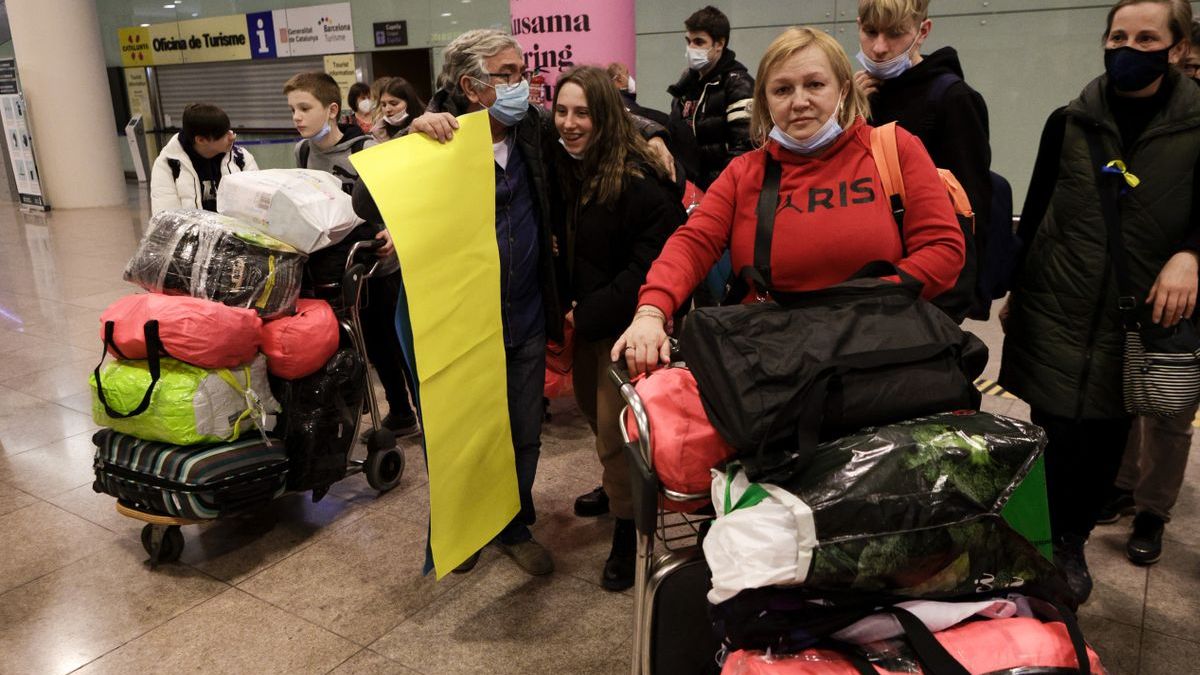 El primer vol de rescat amb persones ucraïneses va arribar dissabte a l’aeroport del Prat. Hi viatjaven 227 persones, principalment dones i nens (a la fotografia).