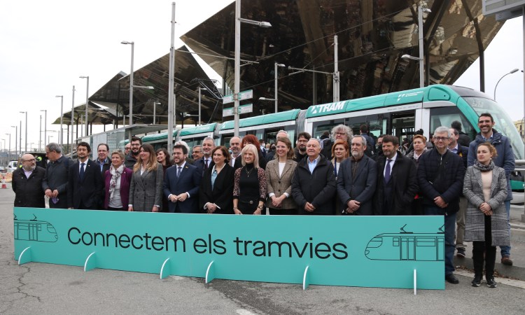El president Aragonès va celebrar que la unió del tramvia impliqui una transformació urbanística i avançar cap a “unes ciutats més amables”.