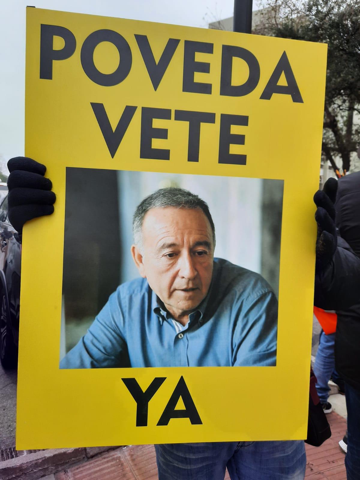 Els sindicats CCOO i UGT van convocar aquest dimarts una concentració a la seu de l’Àrea Metropolitana de Barcelona (AMB) a la Zona Franca per protestar contra el sistema de licitacions que convoca l’entitat en forma de “subhasta” per adjudicar el servei de Transport Públic a empreses de gestió privada. En la concentració, en la que van participar uns 300 treballadors de línies de bus de l’AMB, es va demanar la dimissió d’Antoni Poveda, vicepresident de Transport i Mobilitat de l’AMB, senador, primer secretari de la federació del PSC del Baix Llobregat i exalcalde de Sant Joan Despí . Diverses pancartes exhibien missatges com “Els drets de les persones treballadores no se subhasten. No a la precarització del transport públic”, al costat de cartells amb la frase “Poveda vete ya” (a la fotografia).
