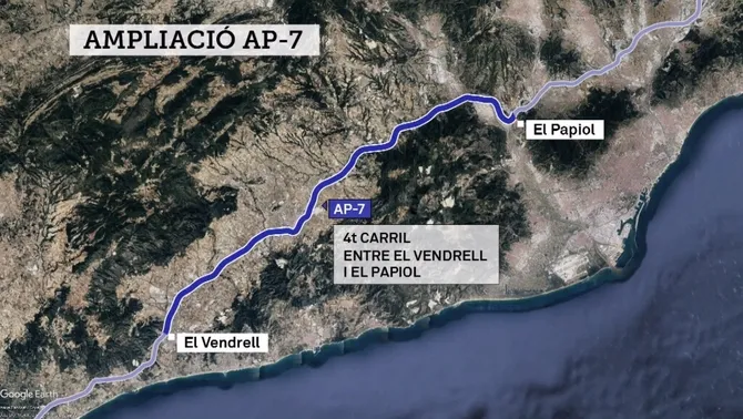 El ministeri que dirigeix l’exalcaldessa socialista de Gavà, Raquel Sánchez, ha anunciat que construirà un quart carril per sentit a l’AP-7 entre el Vendrell (Baix Penedès) i el Papiol (Baix Llobregat) (a la fotografia).