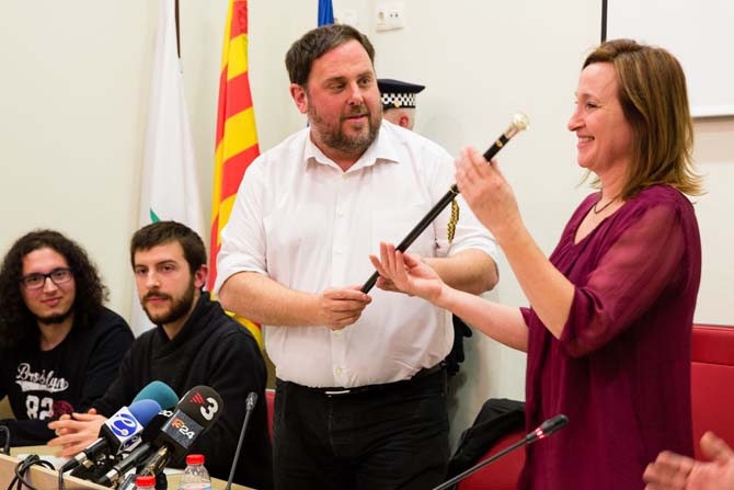 Aymerich va afirmar que “la il·lusió i el convenciment que em mou ara és el mateix que quan em vaig presentar davant vostre per encapçalar la llista el 2019”. Els resultats de les eleccions de fa tres anys van provocar que ERC perdés l’alcaldia que ostentava Aymerich, que havia substituït en el càrrec a Oriol Junqueras el desembre de 2015 (a la fotografia). En aquelles eleccions el PSC i ERC van empatar a 8 regidors, tot i que els socialistes van guanyar en vots populars. Ciutadans va obtenir 3 regidors i Sant Vicenç-En Comú Podem, 2. El pacte entre el PSC i Ciutadans va fer alcalde al socialista Miguel Comino. La descomposició de Ciutadans, que ja ha arribat també a Sant Vicenç, deixa unes eleccions del 2023 molt obertes.
