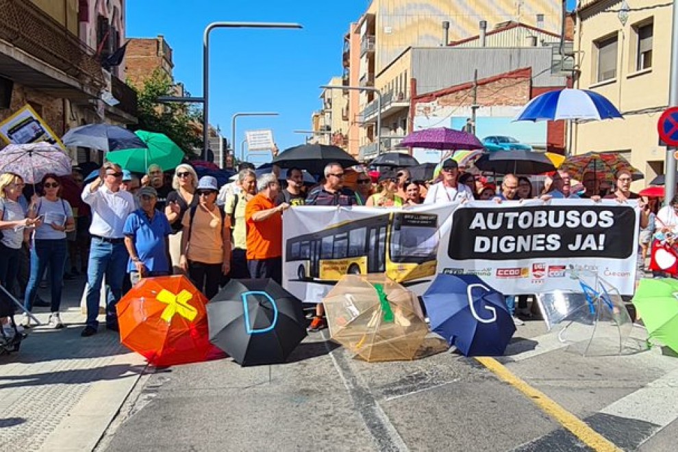 Important assistència de gent a la manifestació convocada aquest dissabte, 9 de juliol, per la Plataforma per un servei d’autobús digne al Baix Llobregat (a la fotografia) . Més de quatre-centes persones van anar a peu des de Gavà fins Viladecans, per la C245, moltes d’elles lluint paraigües, en protesta pel deteriorament del servei d’autobús que afecta sobre tot a aquestes dues poblacions i a Castelldefels i Sant Boi. En el transcurs de la marxa es van poder escoltar eslògans que demanaven la dimissió del Vicepresident de Transport , Mobilitat i Sostenibilitat de l’Àrea Metropolitana de Barcelona (AMB), Antoni Poveda, senador i president de la federació del Baix Llobregat del PSC. Poveda, a la mateixa hora, presidia una reunió de la Federació del PSC de la comarca en la que, segons el comunicat fet públic pels socialistes, es van tractar altres qüestions.