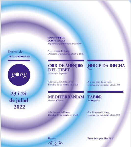 Els dies 23 i 24 de juliol, es celebrarà a les Coves de Montserrat de Collbató la 16a edició del Festival Gong, reprenent el format habitual d’abans de la pandèmia.