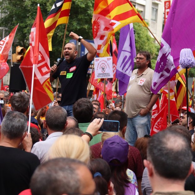 El passat dia 6 de juliol, CCOO i UGT es van manifestar a Barcelona, davant la seu de la patronal Foment del Treball, per reclamar un increment generalitzat dels salaris (a la fotografia)