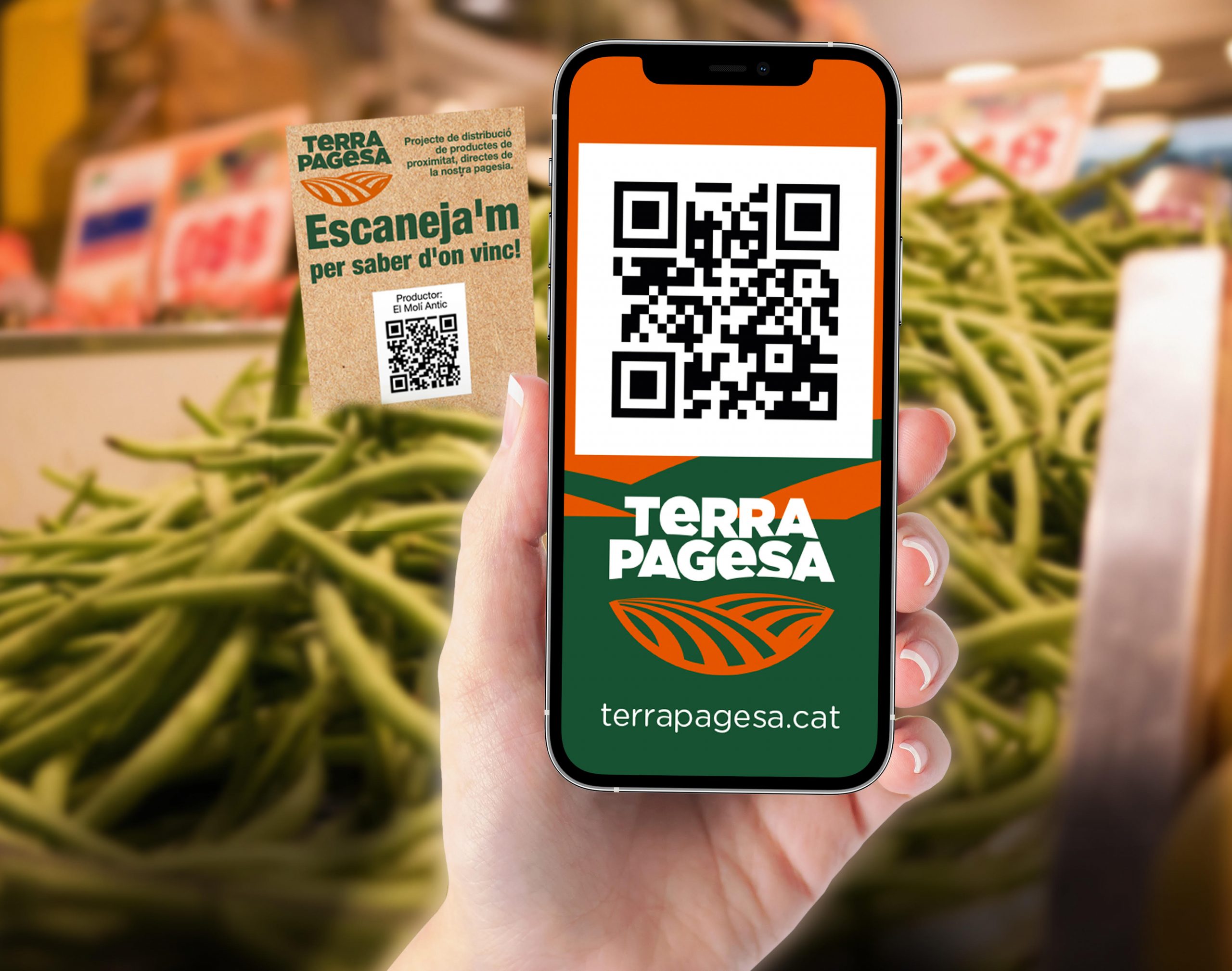 La garantia sobre l’origen del producte es un element clau del projecte. Així, si al punt de venda els consumidors escanegen amb el telèfon mòbil un codi QR vinculat al producte, podran saber quin pagès o pagesa l’ha produït ( a la fotografia).