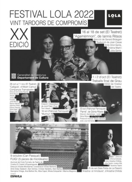 El Festival LOLA d’Esparreguera ja ha presentat la programació de la temporada 2022, que enguany arriba a la seva vintena edició. Les activitats s’iniciaran el 16 de setembre i les funcions s’allargaran fins el 9 d’octubre.