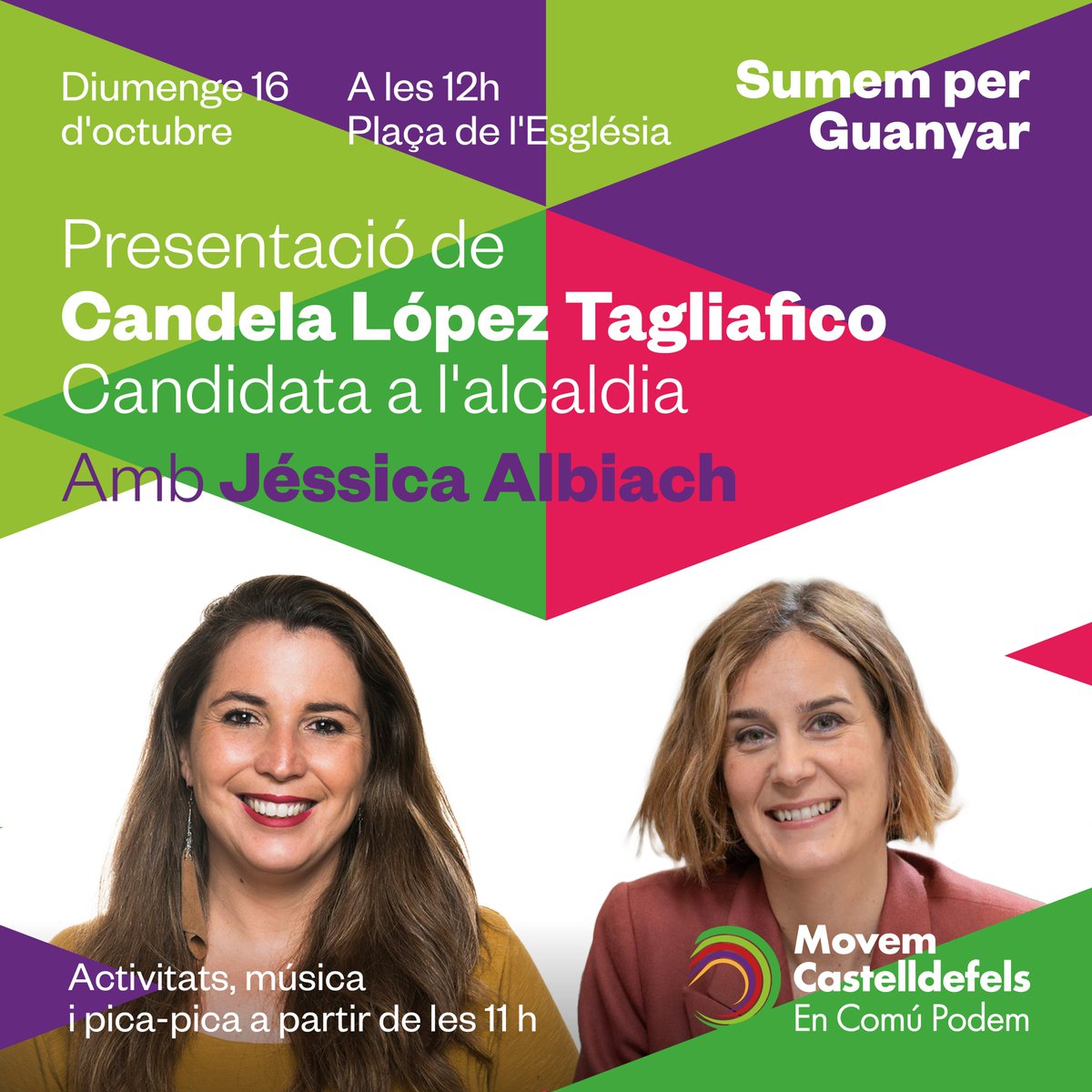 Pocs dies després que elBaix.cat informés de l’elecció de Candela López com a candidata a l’alcaldia de Castelldefels per part de Movem Castelldefels En Comú Podem, aquest diumenge 16 d’octubre, els Comuns faran l’acte de presentació pública de la seva cap de llista (a la fotografia).