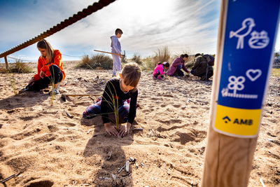 Gairebé 500 persones (a la fotografia), el doble que en l’edició passada, van plantar 1.600 espècies dunars i van retirar 120 kg d’espècies invasores.
