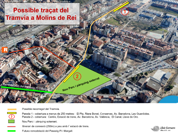 I la quarta al·legació denuncia la manca de previsió en relació a la futura arribada del tramvia a Molins de Rei (a la fotografia).