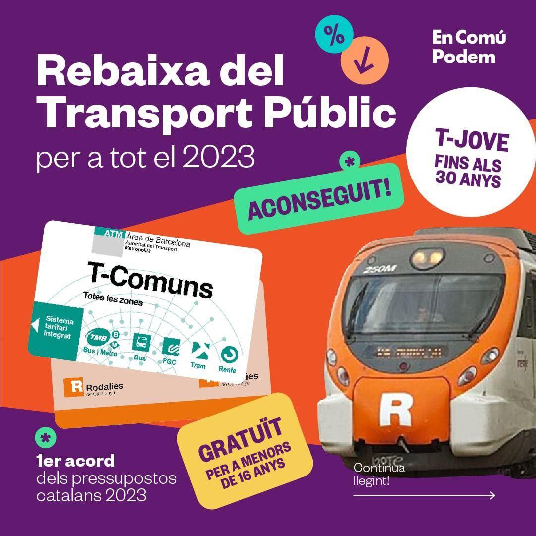 - S’allarga durant tot el 2023 la rebaixa del preu del transport públic que es va aprovar per fer front a la crisi.