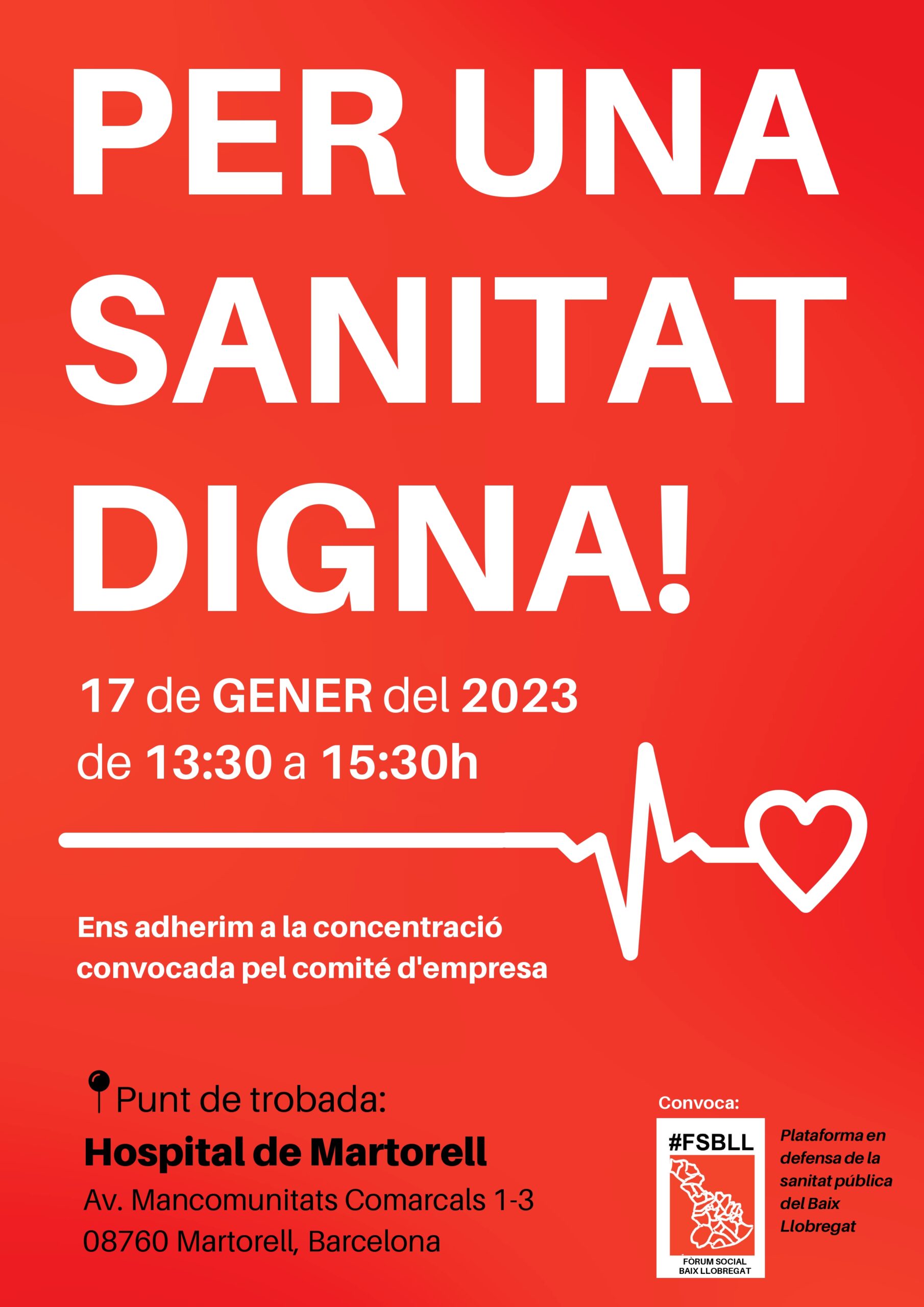 El proper dimarts, dia 17 de gener, el Comitè d’Empresa de l’Hospital ha convocat una concentració a dos quarts de 2 del migdia, davant del centre mèdic, a l’Avinguda Mancomunitats Comarcals, 1-3, de Martorell.