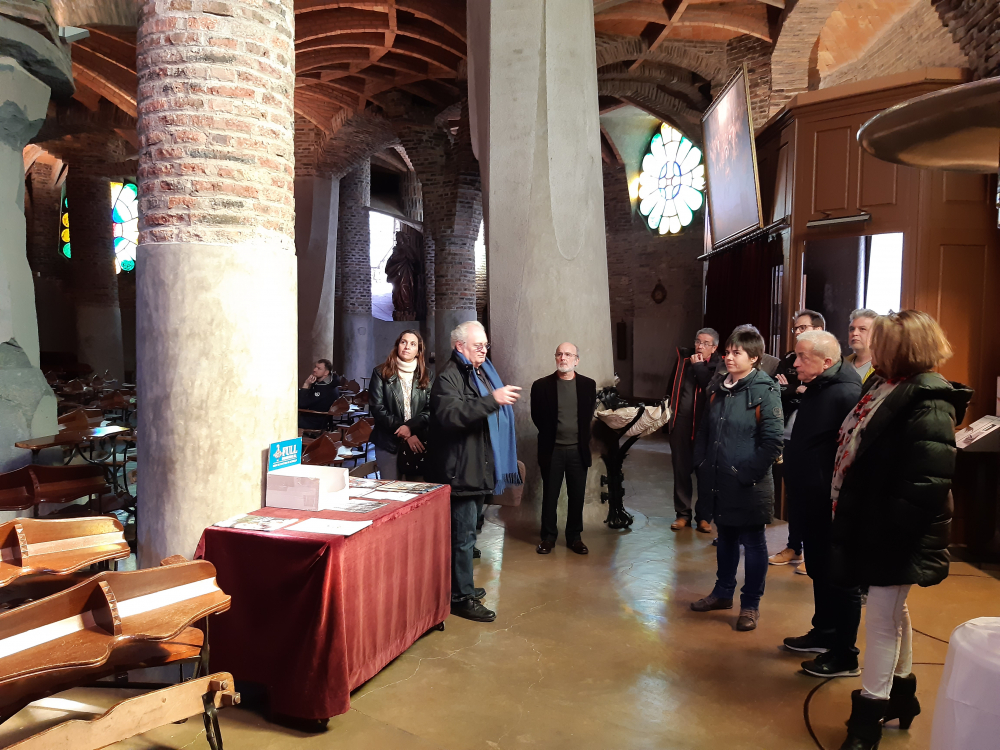 El Consorci de la Colònia Güell va realitzar el passat dilluns, 30 de gener, l’acte de presentació (a la fotografia) de les dues obres de restauració executades durant el segon semestre del 2022 a la Cripta: la “Reparació de la coberta principal” i la “Restauració dels paraments exteriors i dels elements de trencadís de vidre i ceràmica de les finestres”.