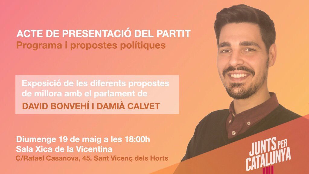 Junts x San Vicenç ( Vicentins pel Canvi i ERC) ha fet públic que incorpora Dani Ribas ( en una fotografia del 2019) que va ser cap de llista de Junts per Catalunya a Sant Vicenç dels Horts en les darreres eleccions municipals, a la candidatura que presentarà de cara a les eleccions del 28 de maig. Ribas és mestre i en l’actualitat és director de l’escola de primària La Immaculada; també està vinculat al club Handbol Sant Vicenç. L’assemblea de Junts x Sant Vicenç ha de decidir quin lloc ocuparà a la llista. En canvi, l’organització local de Junts per Catalunya ha rebutjat l’oferiment de la cap de llista d’ERC, Maite Aymerich, d’incorporar una persona del partit de Puigdemont a la candidatura d’ERC i Vicentins pel Canvi, la qual cosa fa preveure una dura pugna entre els dos grups per aconseguir el vot independentista.