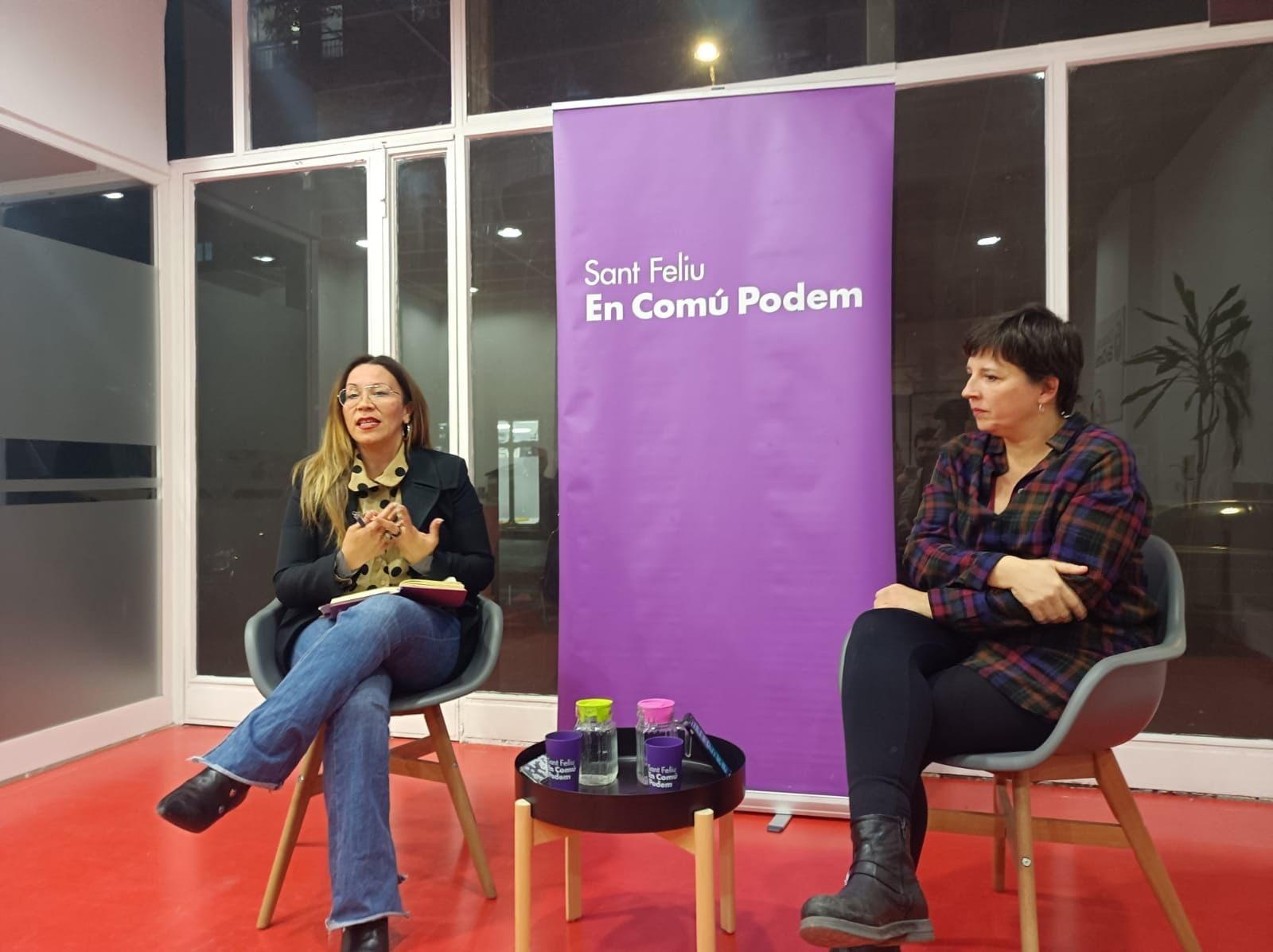 Laia Ortiz (a la fotografia amb Loren Rider ) va ser a Sant Feliu de Llobregat aquest dilluns, 20 de febrer, en el marc dels actes organitzats per En Comú Podem per elaborar de forma participativa el seu programa electoral. Va intervenir en la sessió dedicada a aprofundir en polítiques d’igualtat i bé comú.