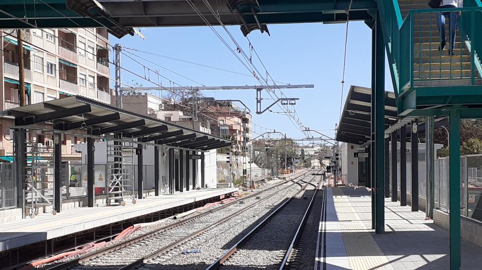 L’estació provisional, ubicada a l’alçada de l’antic pas a nivell, a 200 metres de l’actual, que quedarà fora de servei, es va començar a construir a mitjans de l’any 2022. L’estructura compta amb dues andanes instal·lades a banda i banda del tram del carrer Constitució, situat entre el passeig Comte de Vilardaga i la Riera de la Salut. Disposa de dos edificis independents d’estructura metàl.lica i amb accesos segregats. A l’andana sentit Molins de Rei, amb prop de 120 metres quadrats, s’hi accedirà des del carrer Constitució, el passatge Fargas i el passeig Comte de Vilardaga; a l’altra banda, l’andana sentit Barcelona comptarà amb més de 124 metres quadrats, i tindrà l’accès al carrer Constitució, al costat del Parc Nadal.