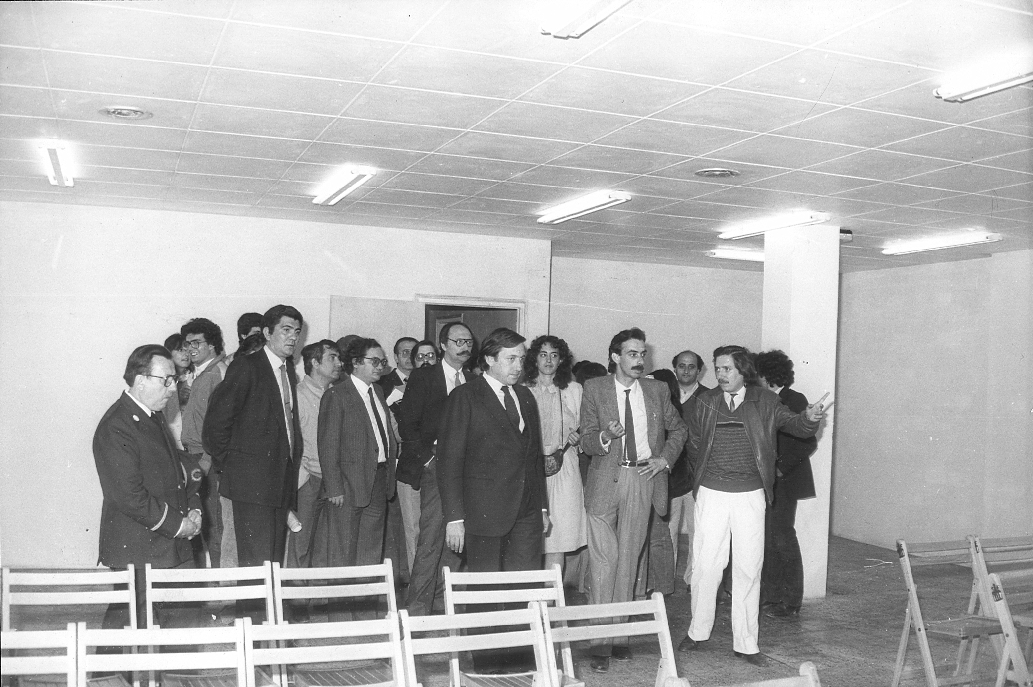 Peu de foto: Inauguració de la primera seu de l’Arxiu, emplaçada al núm. 4 del carrer de Ventura Gassol, el dia de la signatura del conveni de creació, per part del conseller de Cultura Max Cahner i l’alcalde de Sant Feliu, Francesc Baltasar . 23 d’abril de 1983. ACBL-N-1-9135. Fotografia de Blas Serrano.