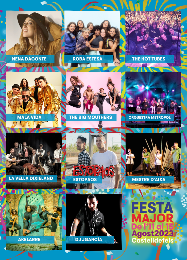Fins el 15 d’agost, la ciutat acull aquests concerts i els de Mala Vida (11 d’agost), Akelarre i Big Mouthers (12 d’agost), l’Orquestra Metropol (13 d’agost), les havaneres amb el grup Mestre d’Aixa i les versions d’Estopaos (14 d’agost) i La Vella Dixieland i The Hot Tubes (15 d’agost) · Els escenaris principals de les actuacions, totes elles gratuïtes, són el parc de la Muntanyeta, la plaça de l’Església i els Jardins del Castell