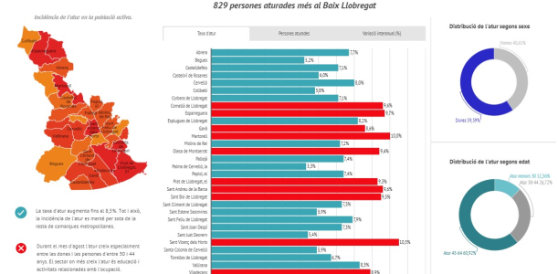 Respecte al mateix mes de l’any 2022, l’atur disminueix en un 4,5% i 1.613 persones menys. La taxa d’atur se situa en el 8,5%, una xifra inferior a la de la resta de comarques de l’àmbit metropolità i del conjunt de Catalunya.