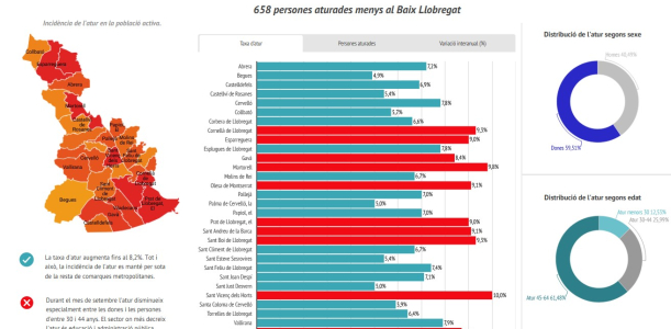 L’atur disminueix al Baix Llobregat durant el mes de setembre. Amb 658 persones aturades menys que el mes passat, setembre tanca amb 33.409 aturats/des