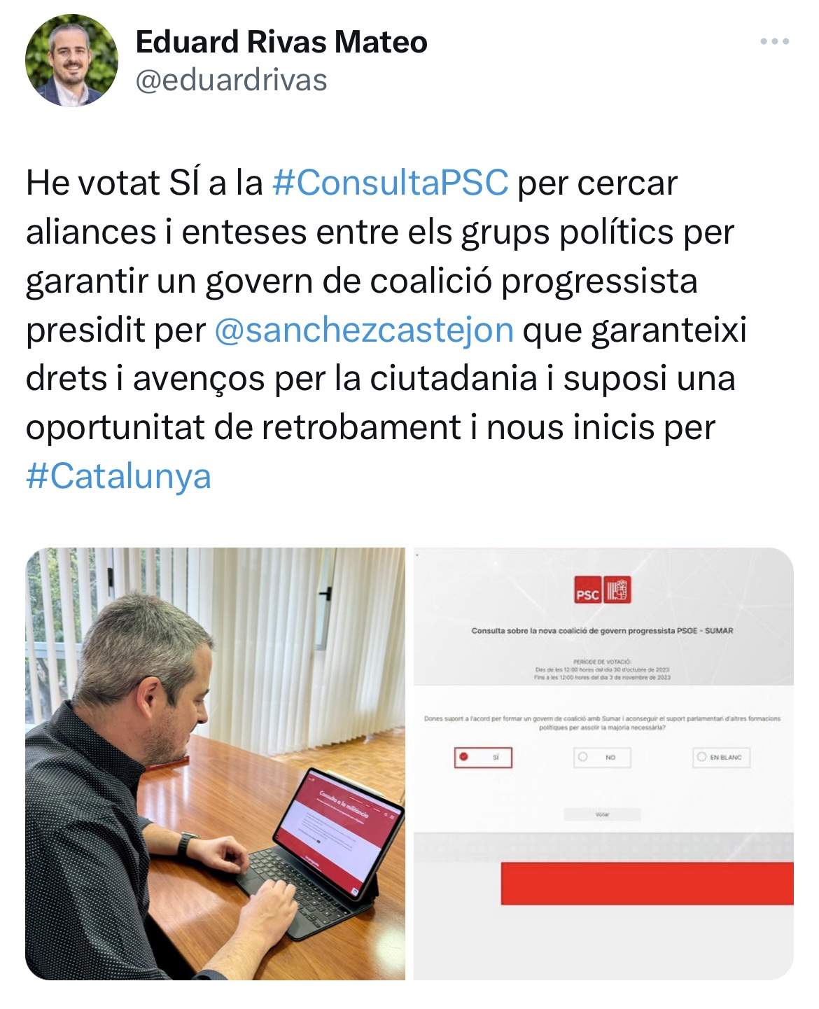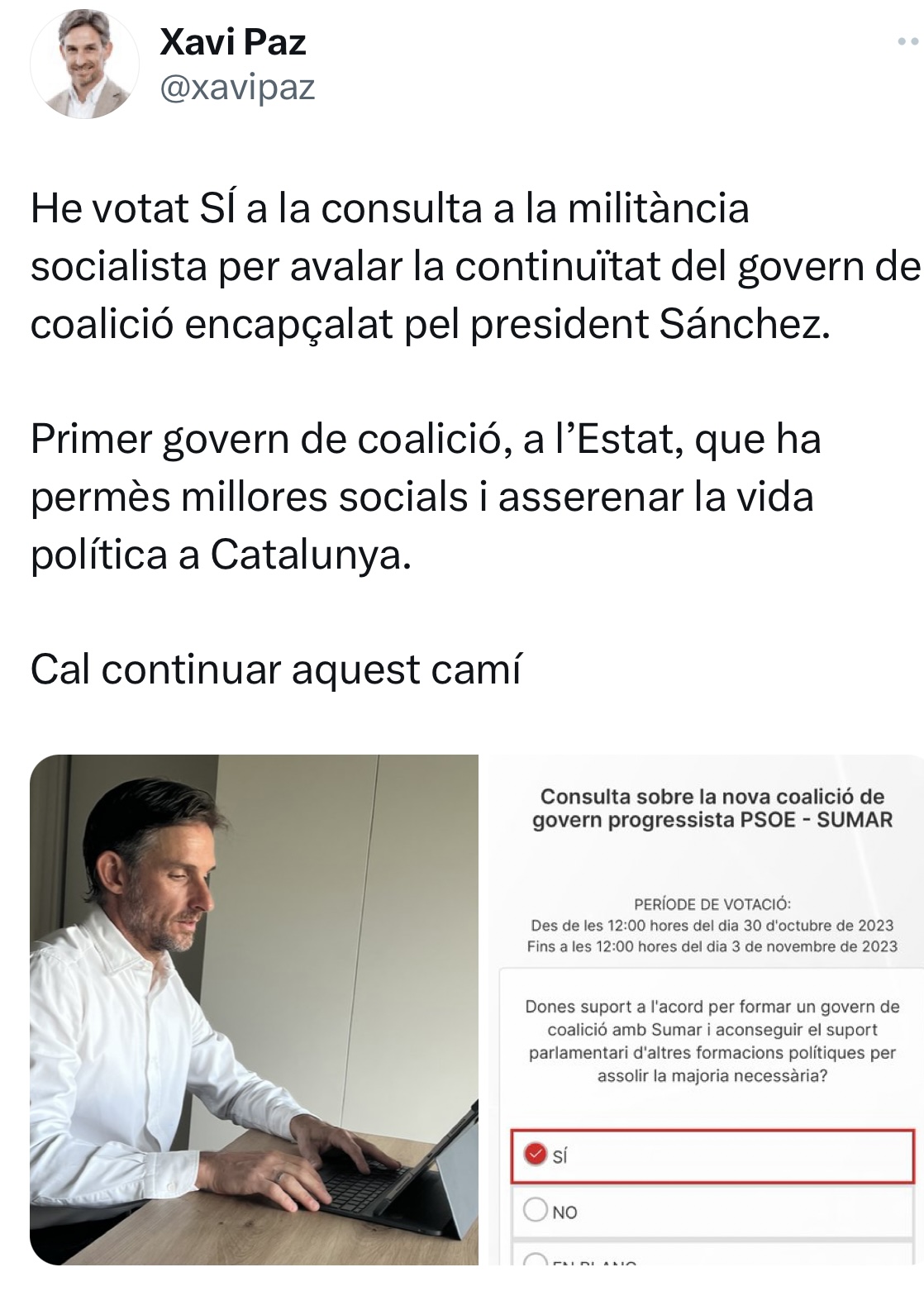 La militància del PSC del Baix Llobregat i de la JSC del Baix Llobregat, com la resta de la militància del PSC i del PSOE, està convocada aquesta setmana a avalar l’acord assolit entre el Partit Socialista i Sumar per a una nova coalició de govern progressista. Especialment rellevants son les declaracions públiques dels alcaldes i alcaldesses socialistes de la comarca