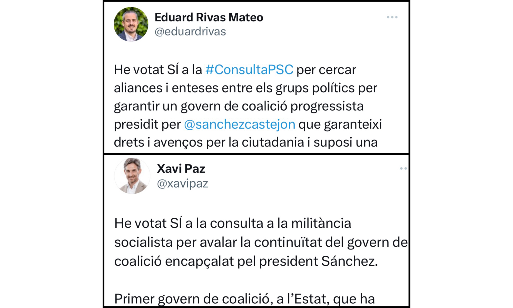 Entre ells, l’alcalde de Molins de Rei, Xavi Paz, o l’alcalde d’Esparreguera, Eduard Rivas; que han compartit a les seves xarxes socials el seu vot favorable a l’acord: