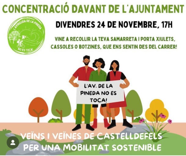 Oposició i societat civil denuncien que el govern municipal de Castelldefels (PP+SOM) vol desmantellar el carril bici de l’Avinguda de la Pineda, que només té 900 metres de longitud, i que destinarà 251.000€ a fer-ho.
