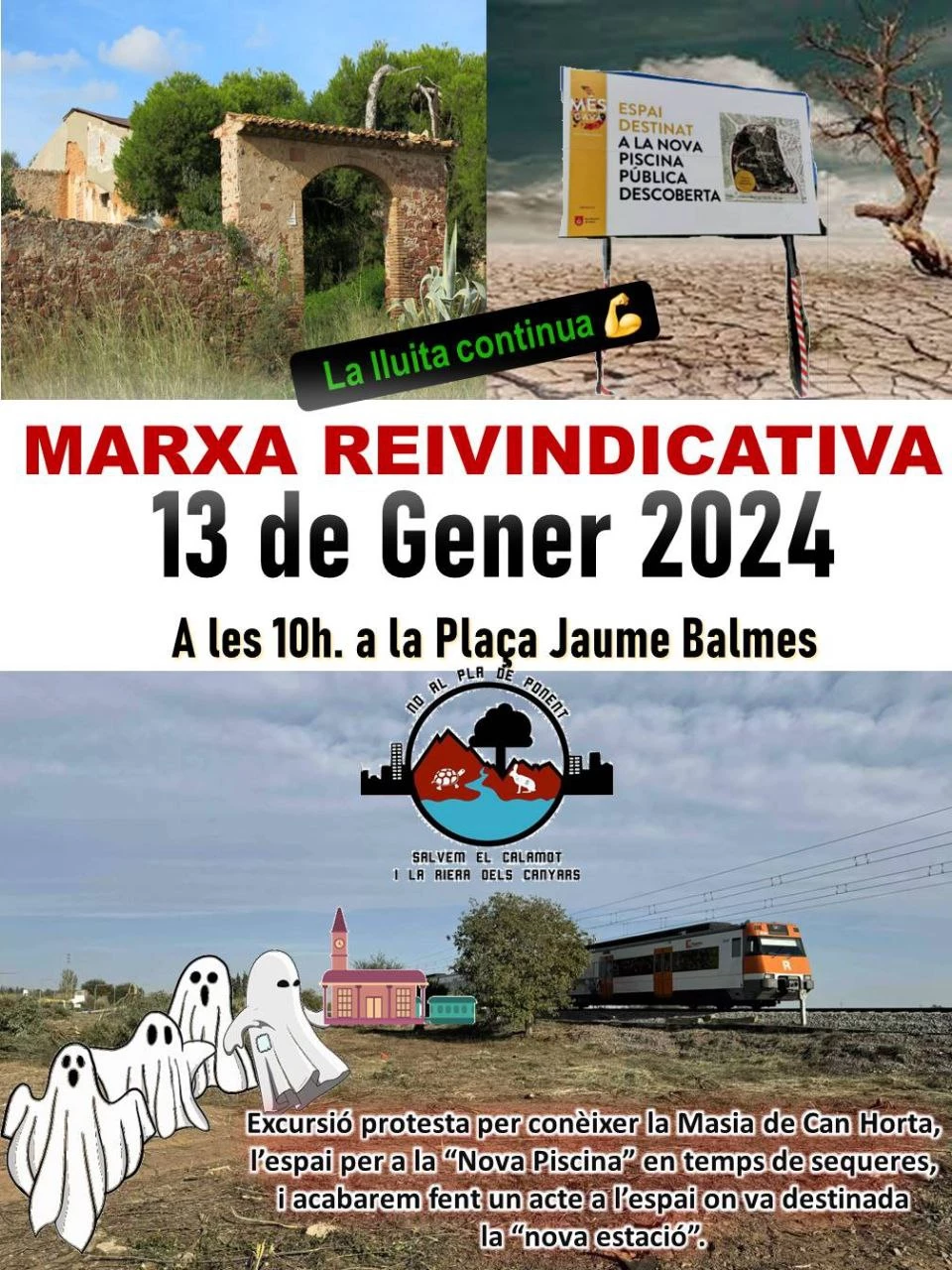 La Plataforma No al Pla de Ponent- Salvem el Calamot convoca aquest dissabte, 13 de gener, a Gavà, una Marxa pels “projectes fantasma del Pla de Ponent”.