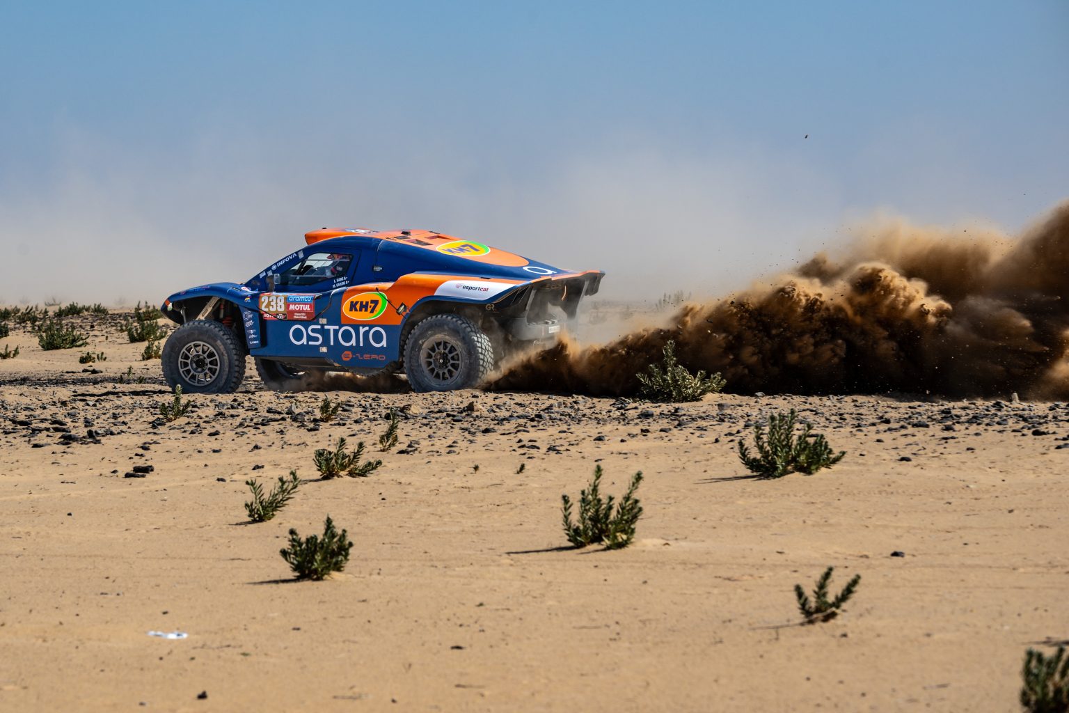 La de l’astara Team ha vist condicionat el seu rendiment com a conseqüència d’un error electrònic que li ha fet perdre potència a la primera meitat de l’especial, que avui constava de 458 quilòmetres repartits en tres parts: una primera de 165 quilòmetres cronometrats, seguida d’un tram neutralitzat per carretera de 179 i una darrera secció de 114 quilòmetres novament cronometrats. Per sort, en aquesta part final el problema ha desaparegut i ha pogut recuperar posicions.
