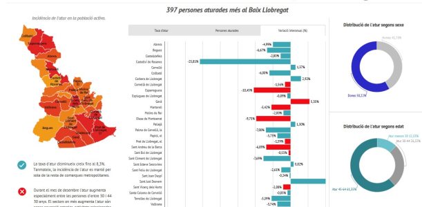 L’atur augmenta al Baix Llobregat durant el mes de desembre. Amb 397 persones aturades més que el mes passat, desembre tanca amb 33.909 aturats/des