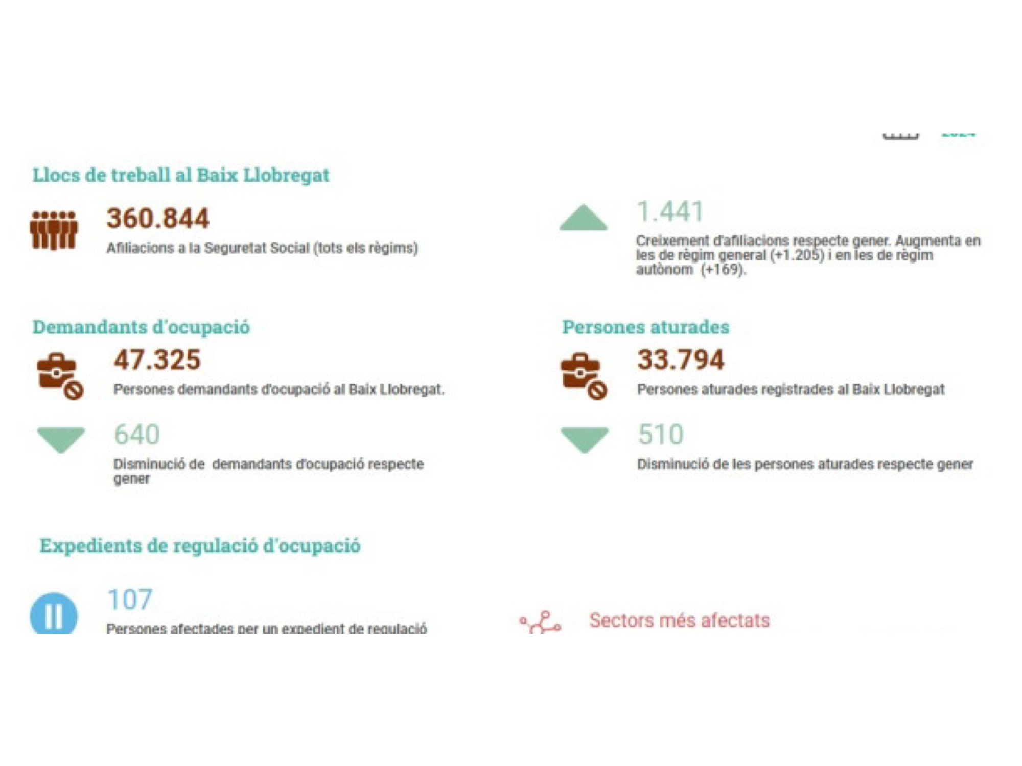 L’Observatori comarcal actualitza les dades mensuals del mercat de treball del Baix Llobregat i destaca la disminució dels demandants d’ocupació, l’atur registrat i l’augment dels llocs de treball respecte gener de 2024.