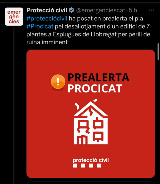 Protecció civil també ha activat el pla Procicat per aquest cas, en fase de prealerta: