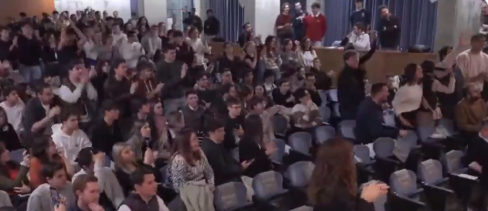 Però l’alcalde del Prat de Llobregat, número 2 de la candidatura dels Comuns, que ve de la tradició d’un partit antifeixista com el PSUC, no ha callat. En uns moments que s’han fet virals a la xarxa, s’ha aixecat de la cadira i ha exigit als militants de Vox que deixessin continuar el debat. Davant els crits dels ultres, Mijoler els hi ha recriminat: “Sou uns feixistes que l’únic que voleu és acabar amb la democràcia i aquí diem prou. Fora, marxeu!”. La majoria dels estudiants que assitien al debat han aplaudit la intervenció de l’alcalde del Prat, al crit de “Fora feixistes de la Universitat” (a la fotografia).