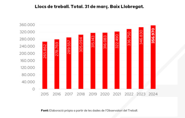 • La comarca assoleix 356.970 llocs de treball a finals del primer trimestre de l’any (+2,9% respecte a l’any anterior), la xifra més alta des del 2008.